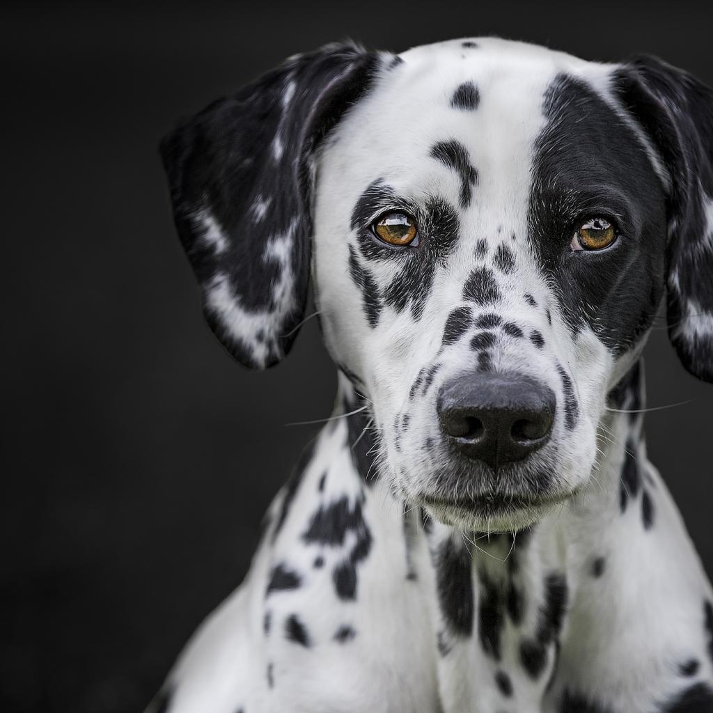 Wallpaper Muzzle of a large beautiful Dalmatian on a black background