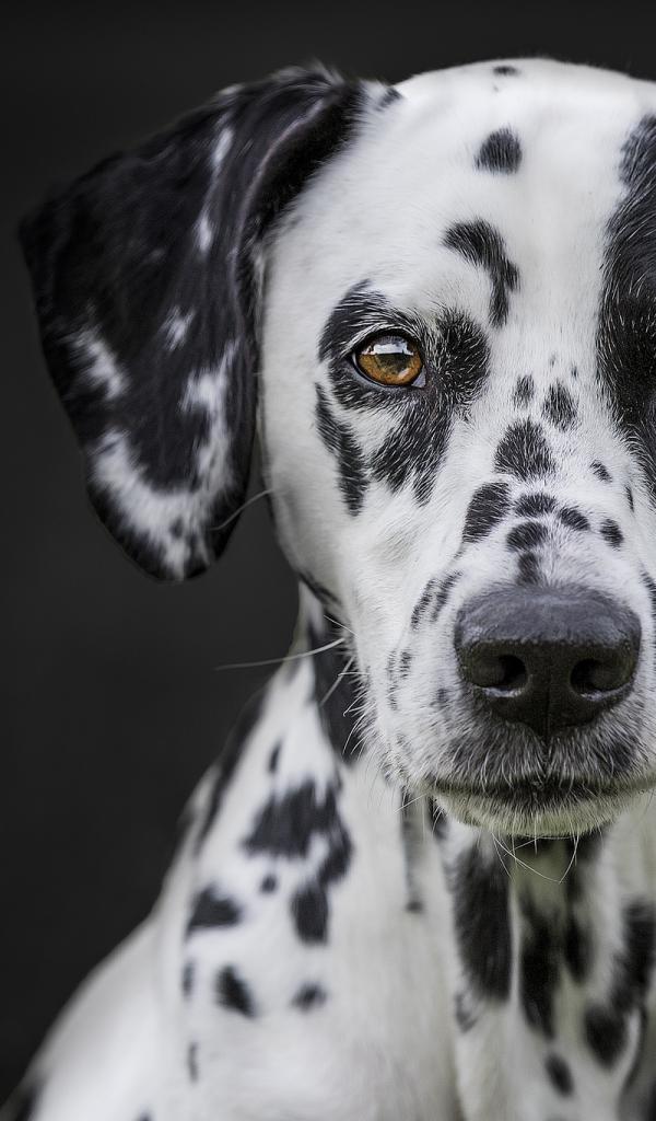 Wallpaper Muzzle of a large beautiful Dalmatian on a black background