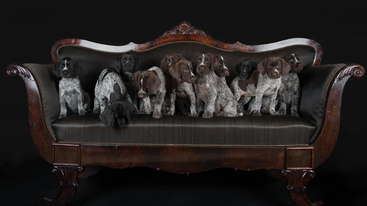 Wallpaper Dráchhaar and Kurzhaar puppies are sitting on a leather couch