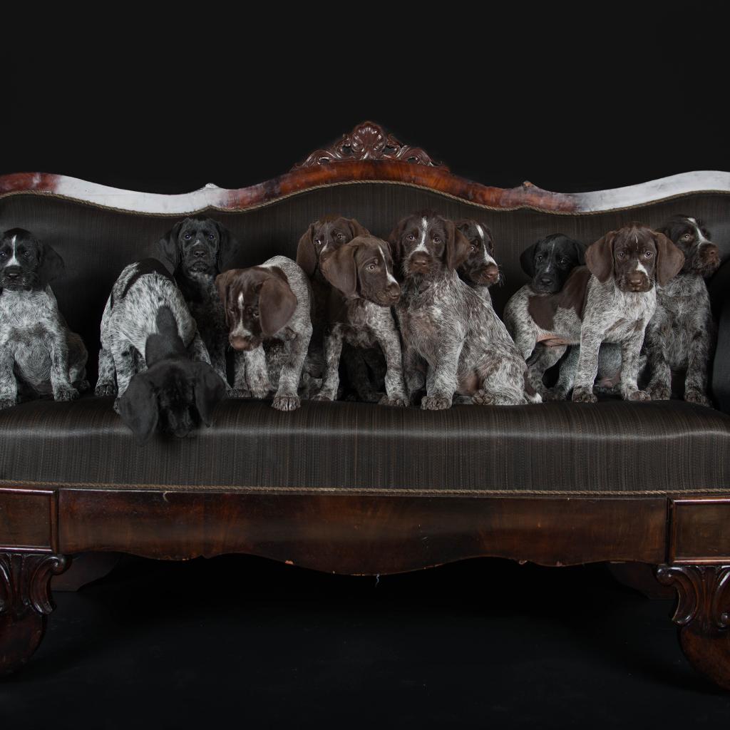 Wallpaper Dráchhaar and Kurzhaar puppies are sitting on a leather couch