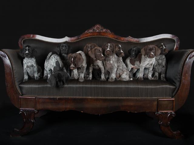 Wallpaper Dráchhaar and Kurzhaar puppies are sitting on a leather couch