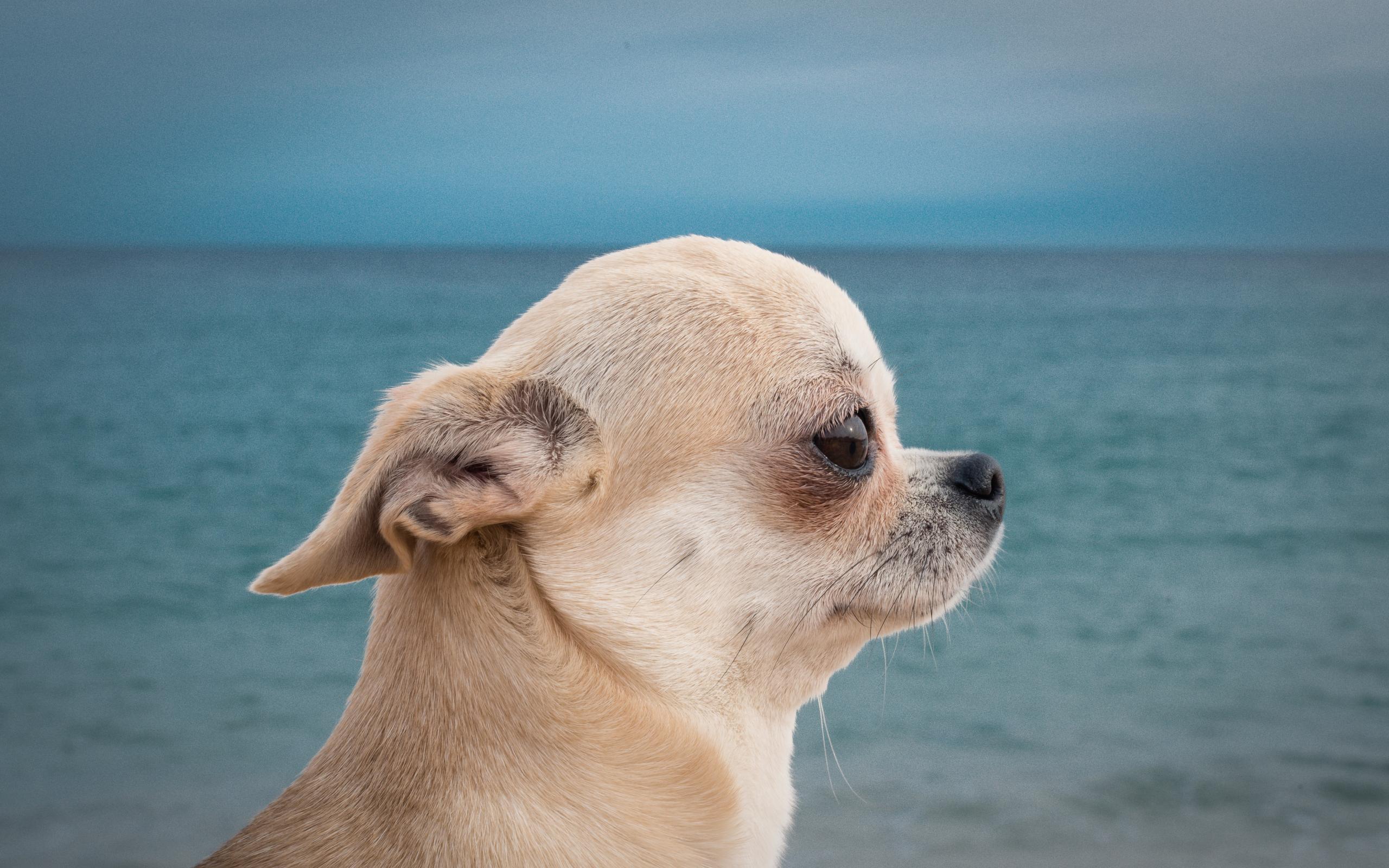 Wallpaper A sad look of chihuahua against the sea