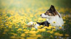 Wallpaper Dog breed Border Collie in glasses lies in a hammock