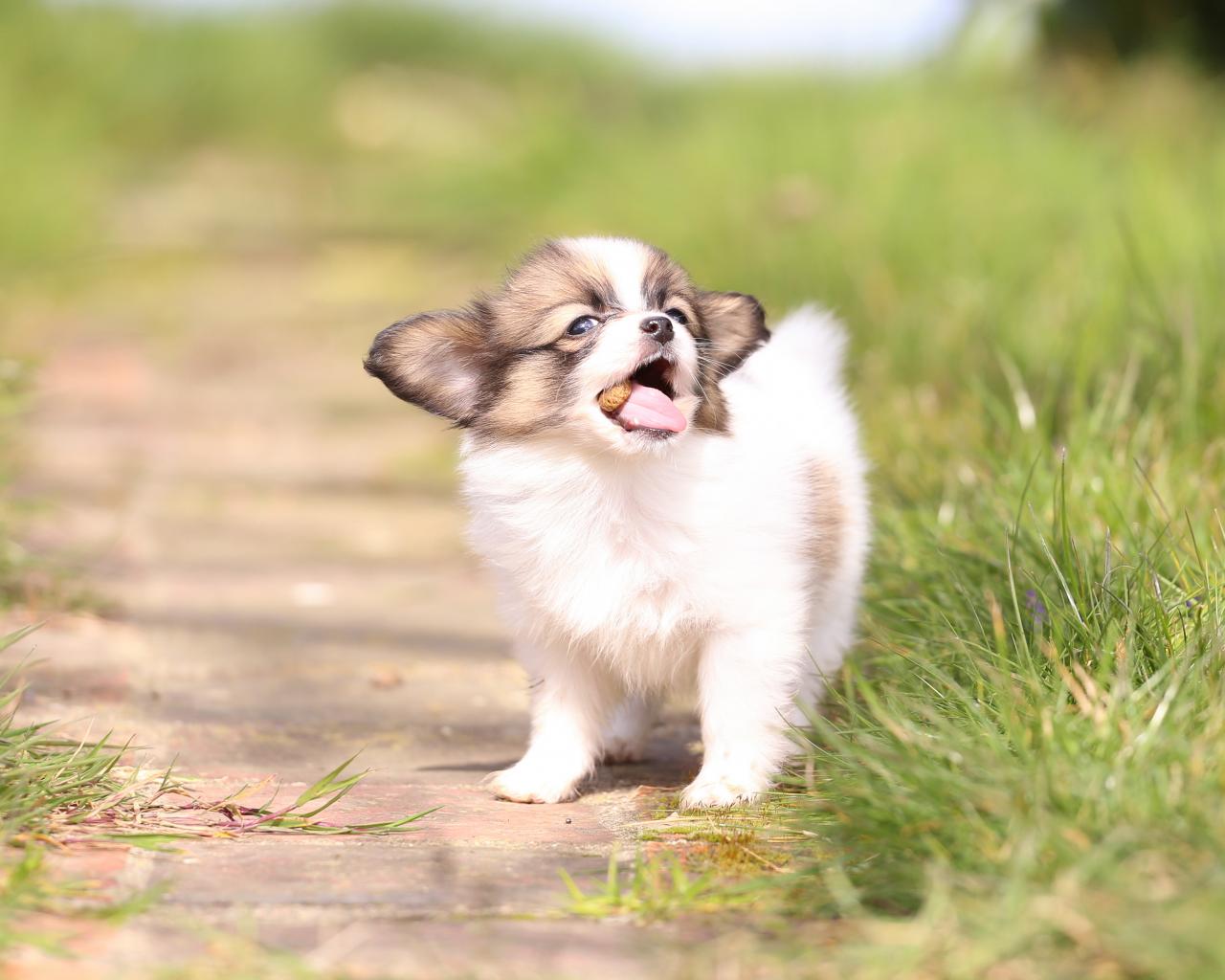 Wallpaper A little funny puppy of the Papillon breed