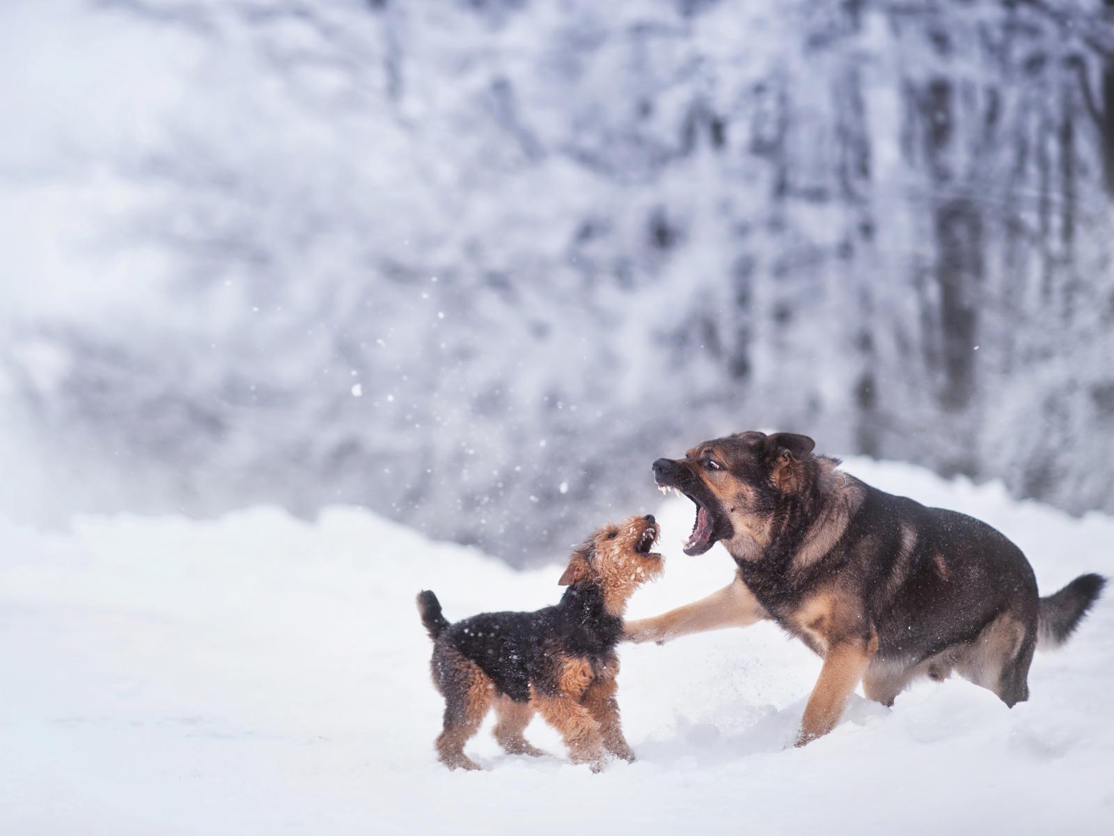 » Wallpaper Two dogs are playing in the snow