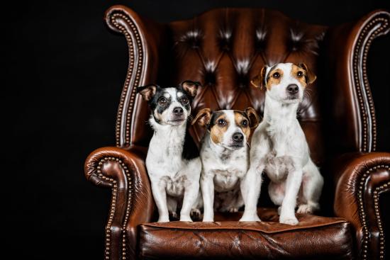 Wallpaper Three Jack Russell Terrier dogs sit on a leather chair