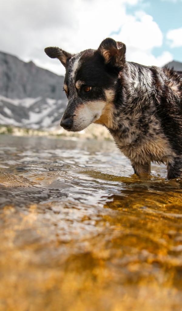 Wallpaper Sad dog standing in the water