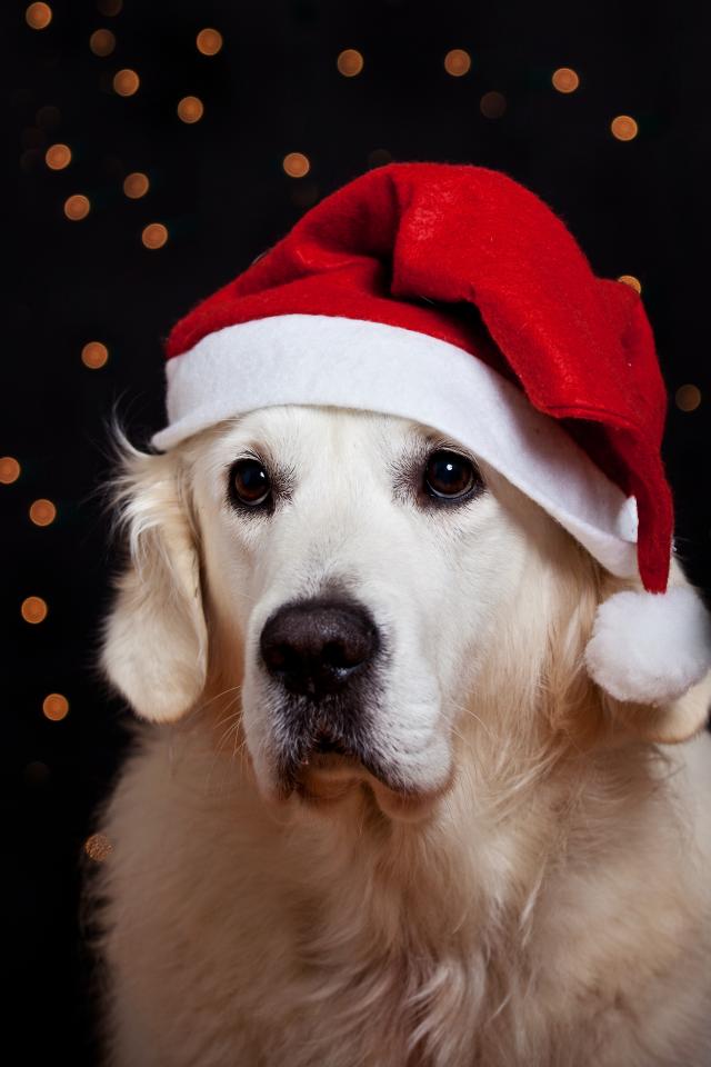 Wallpaper Golden retriever in the Santa Claus hat for the New Year