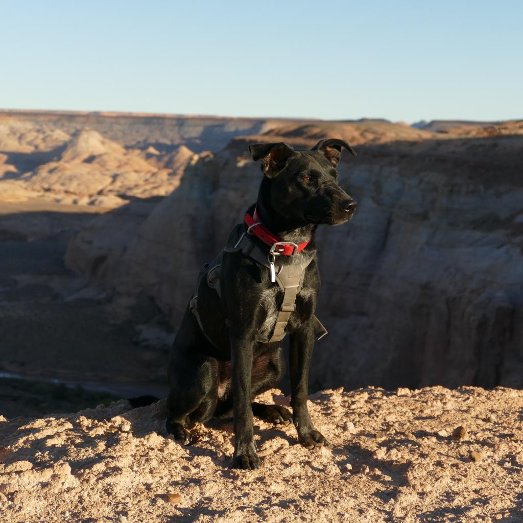 Wallpaper Black smart dog sitting on the cliff near the cliff