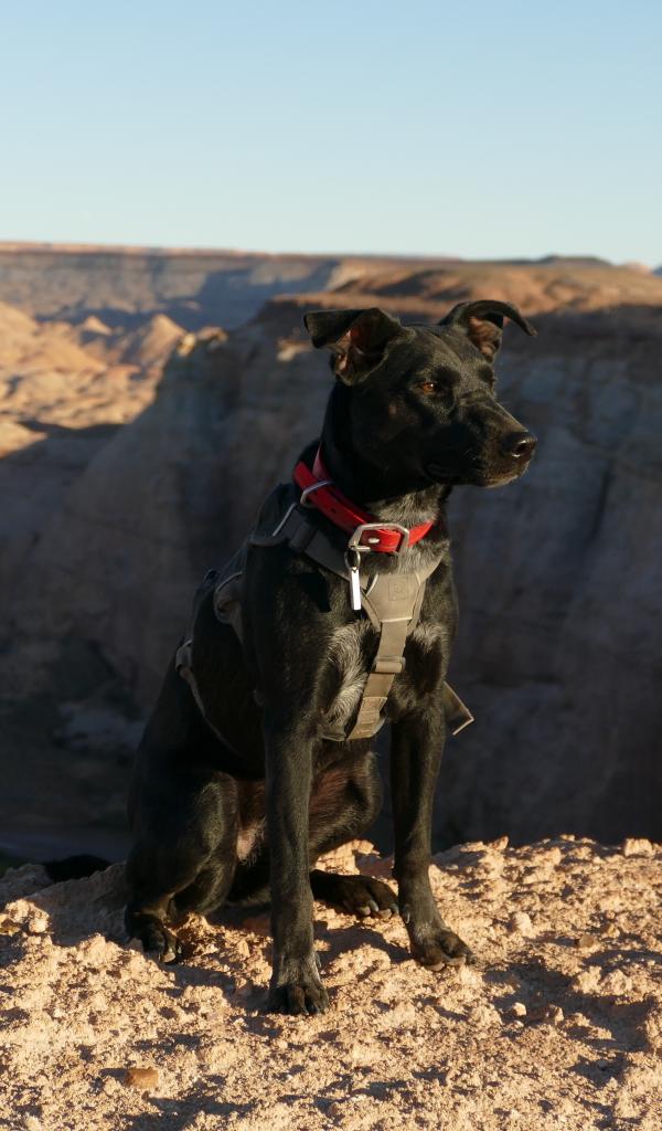 Wallpaper Black smart dog sitting on the cliff near the cliff
