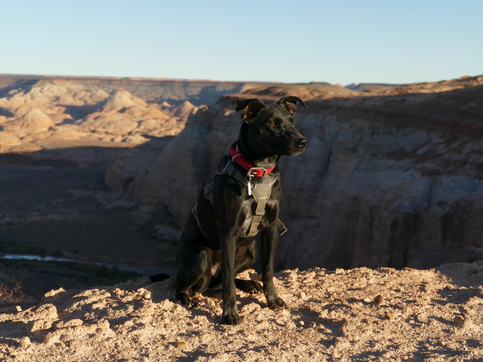 Wallpaper Black smart dog sitting on the cliff near the cliff