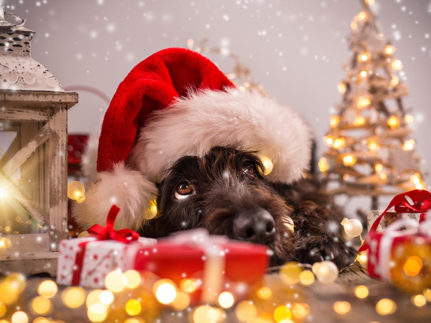 Wallpaper A dog in a New Year`s suit, a symbol of the New Year 2018