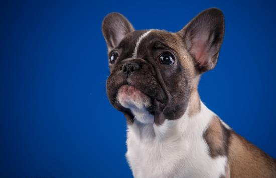 Wallpaper Sad little French bulldog on a blue background