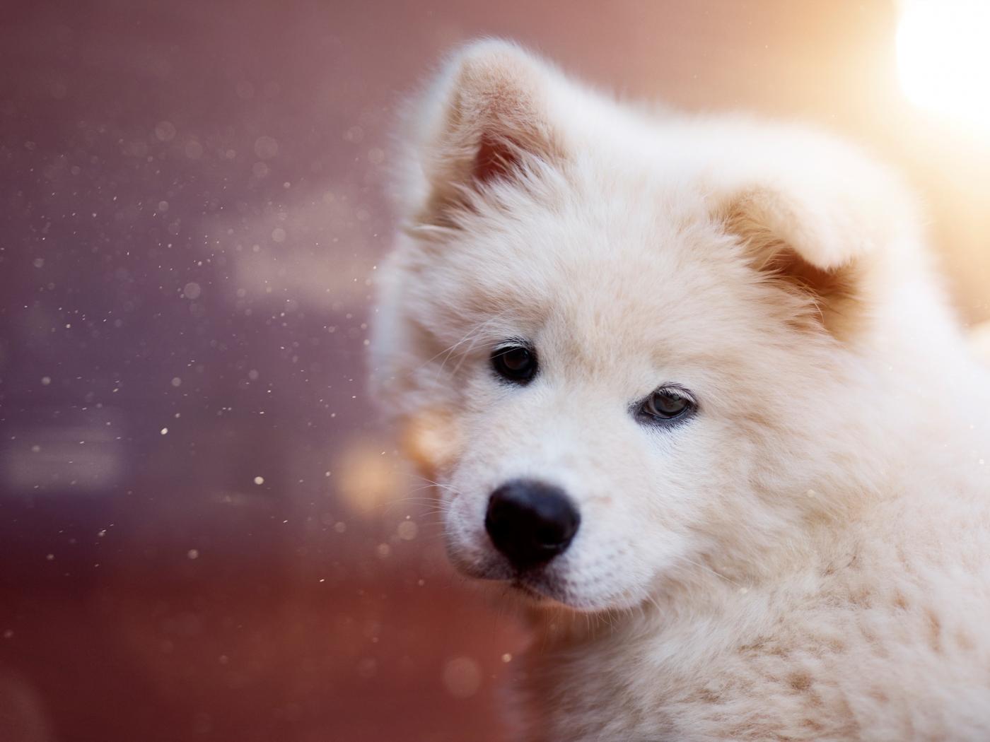 Wallpaper Two white fluffy puppies Samoyed Laika