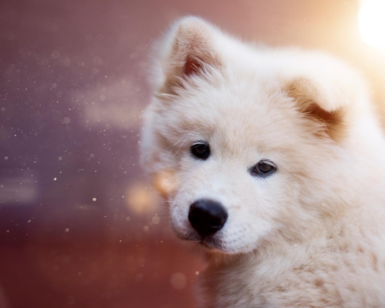 » Wallpaper White fluffy puppy Samoyed dog