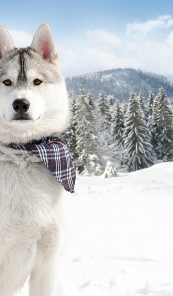 Wallpaper Alaskan Malamute against the background of snow-covered nature