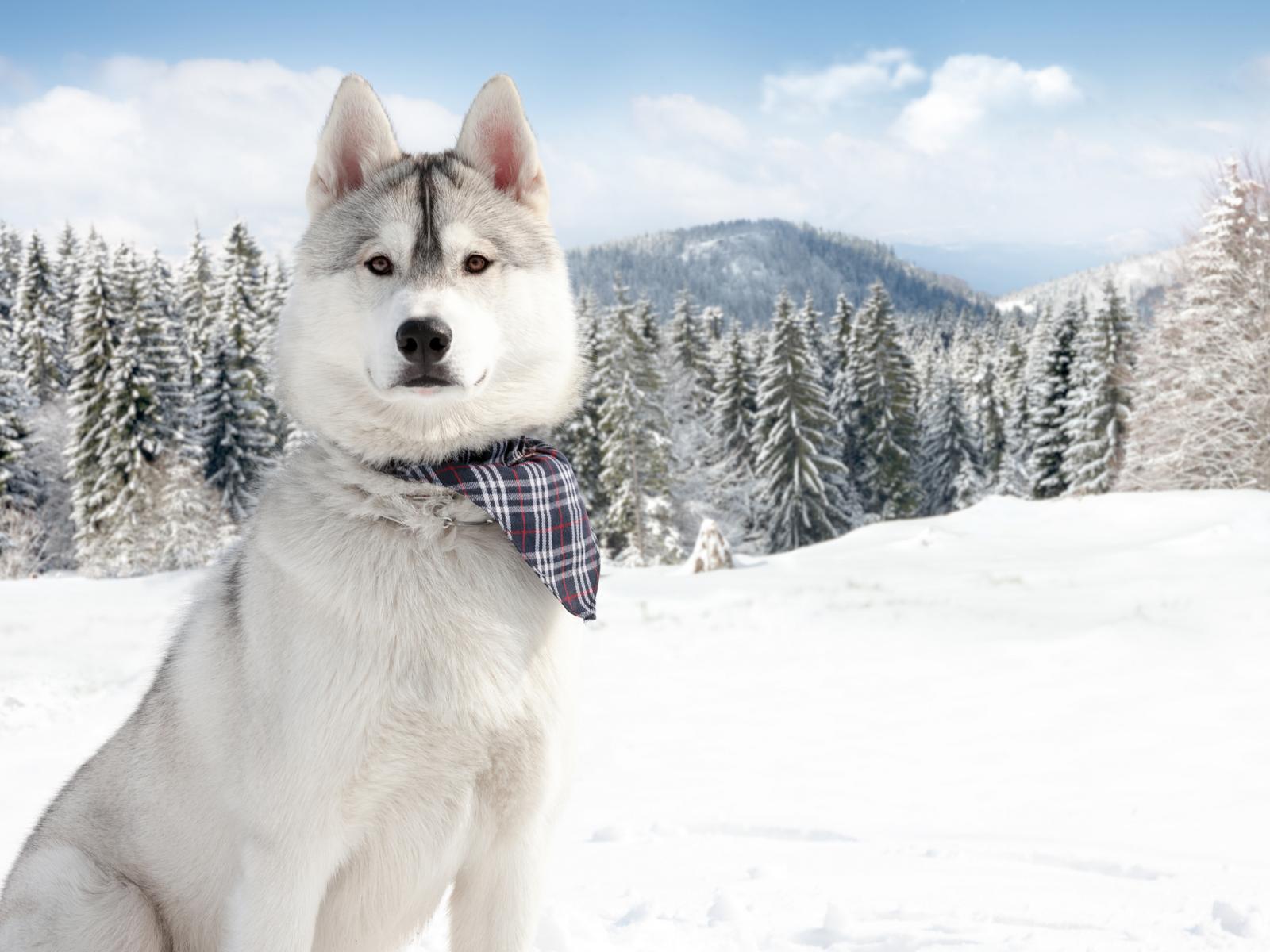 Wallpaper Alaskan Malamute against the background of snow-covered nature