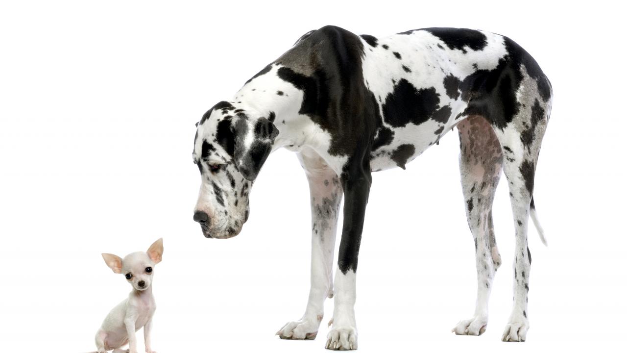 » Wallpaper Great english mastiff and chihuahua puppy on white background