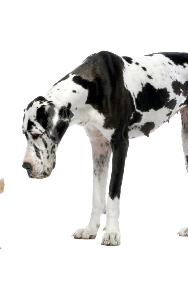 Wallpaper Great english mastiff and chihuahua puppy on white background