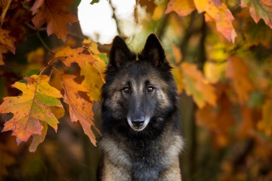 Wallpaper Little girl with yellow leaves in her hand in autumn