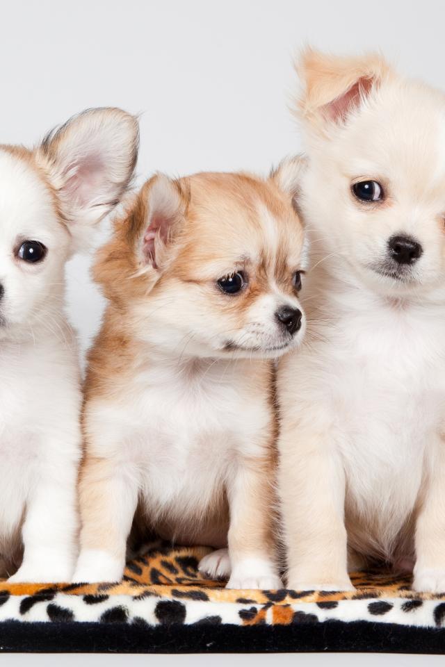 Wallpaper Three cute chihuahua puppies on a gray background