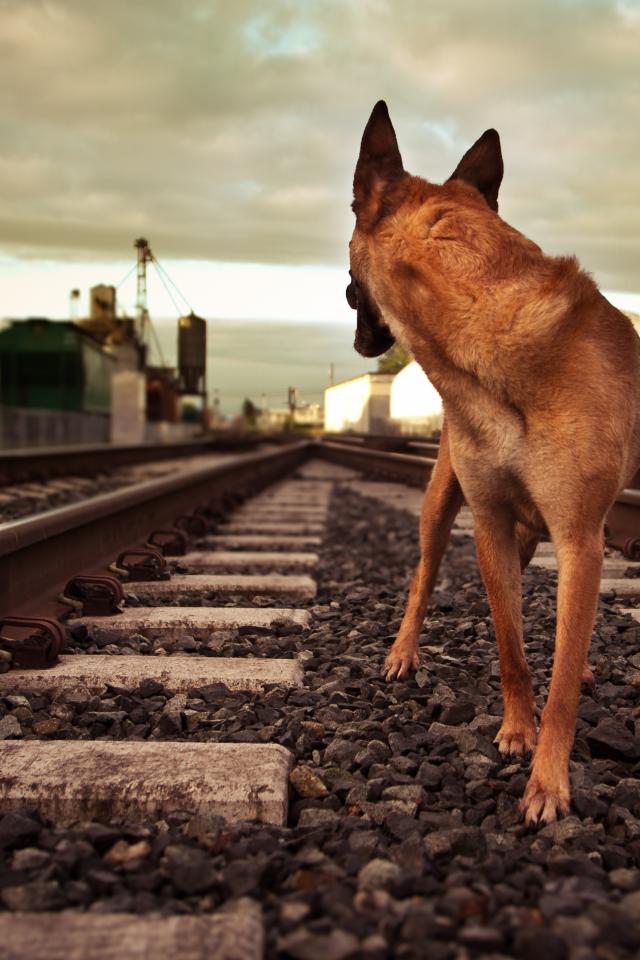Wallpaper German Shepherd Runs by Rail