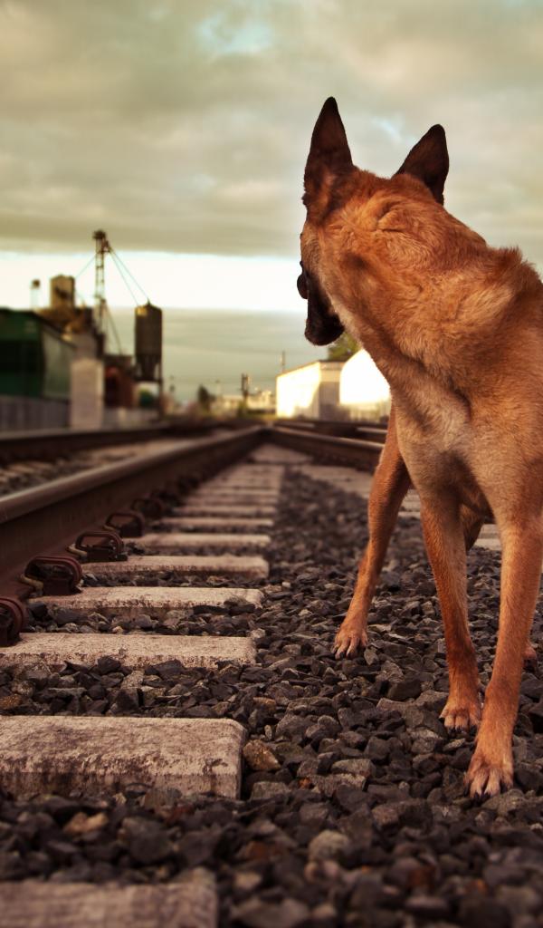 Wallpaper German Shepherd Runs by Rail