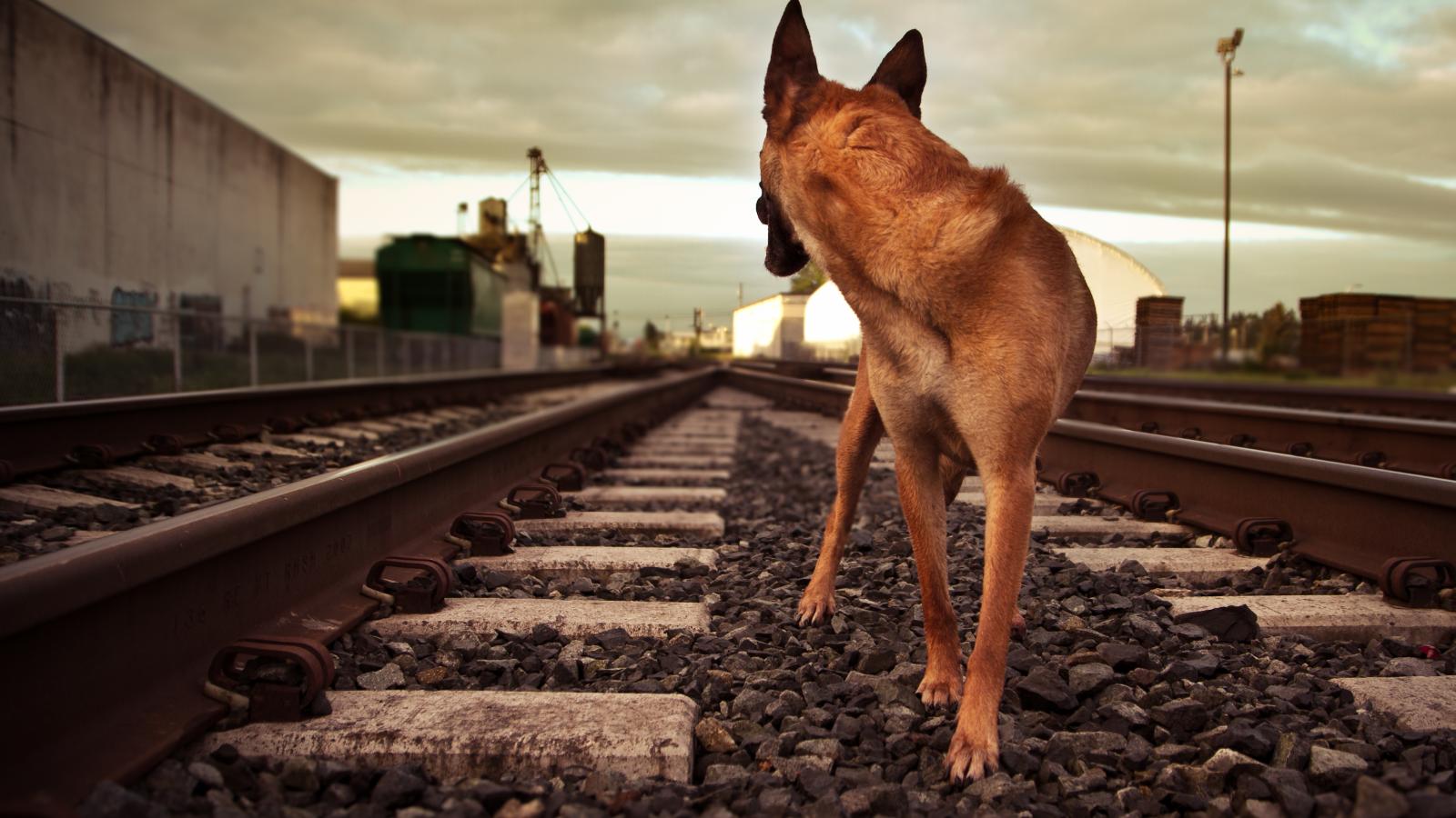 Wallpaper German Shepherd Runs by Rail