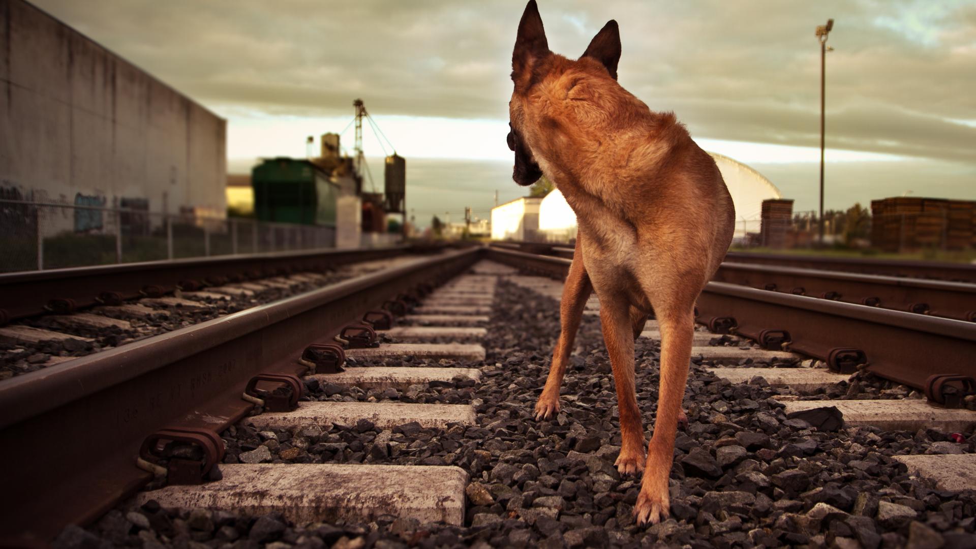 Wallpaper German Shepherd Runs by Rail
