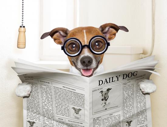 » Wallpaper Funny dog with glasses reading a newspaper