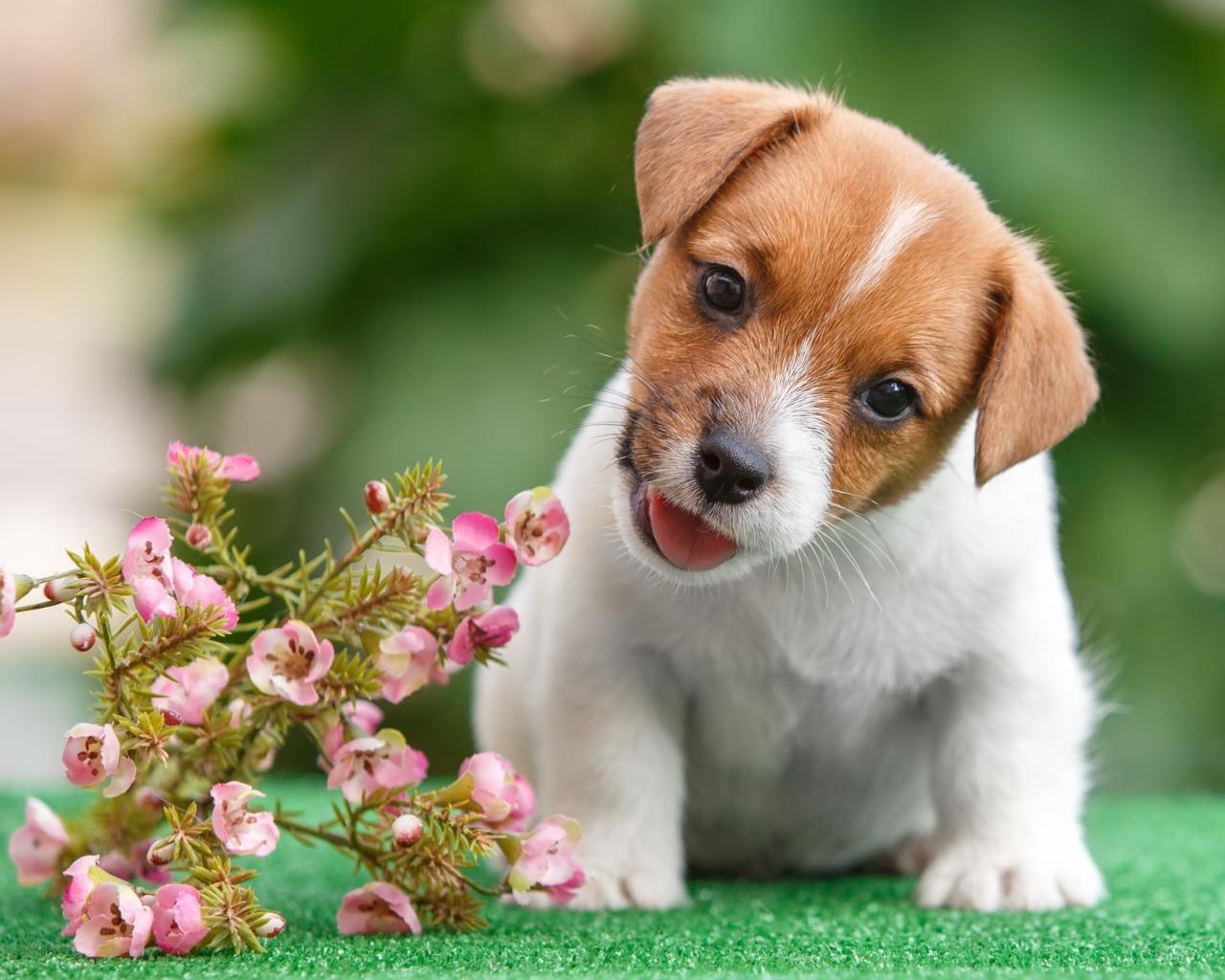 Wallpaper Funny puppy Jack Russell Terrier with flowers