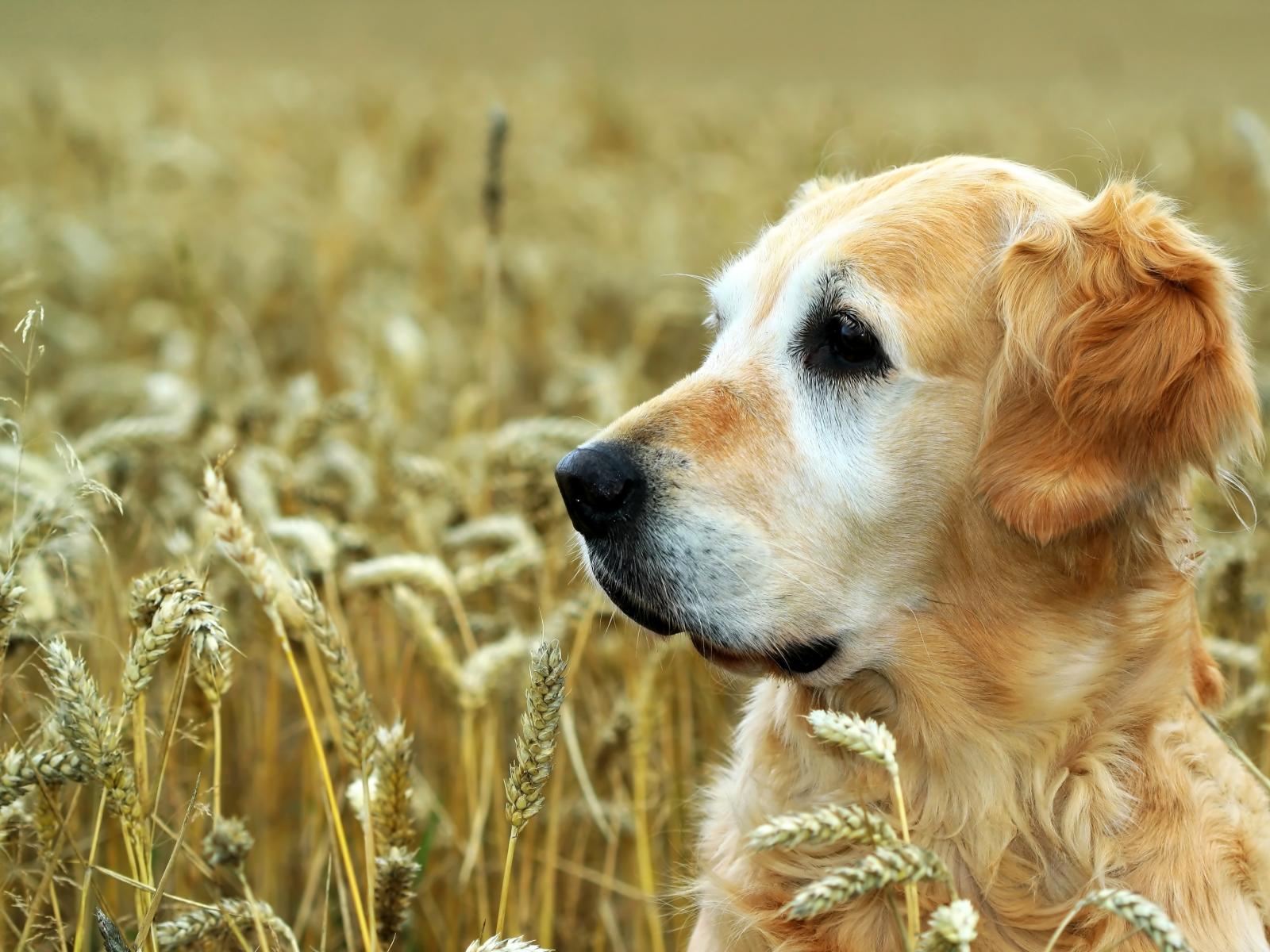 Wallpaper A dog breeds a golden retriever sits in a wheat field