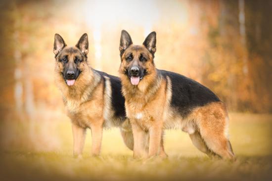 Wallpaper Two beautiful German Shepherds with sticking out tongue