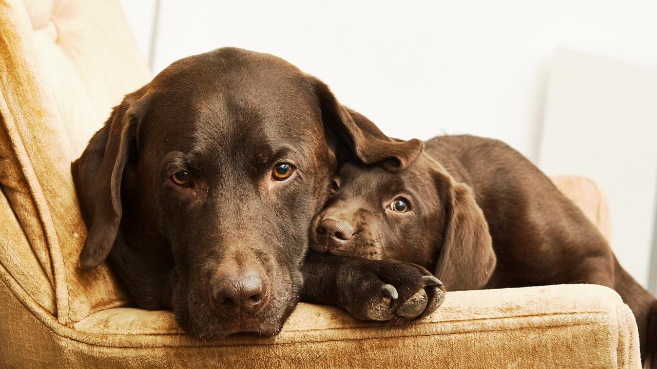 » Wallpaper Labrador with a little cute puppy