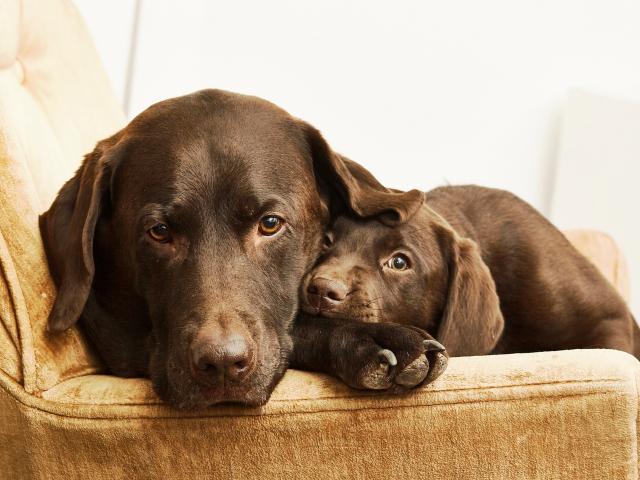» Wallpaper Labrador with a little cute puppy