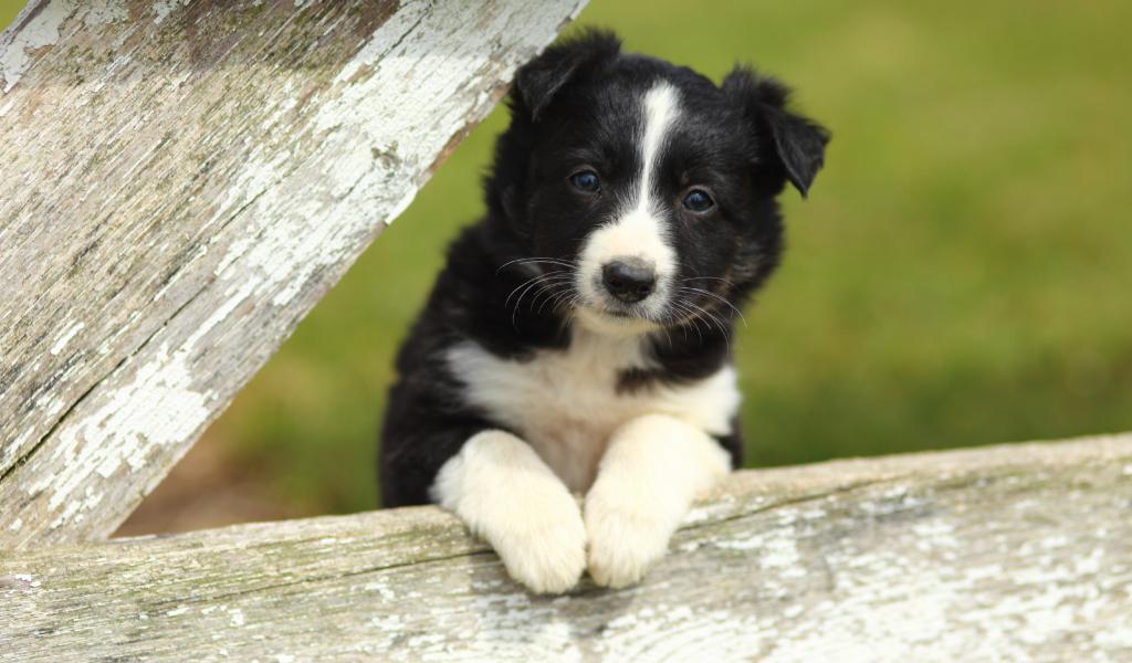 Wallpaper A small black and white border-collie puppy