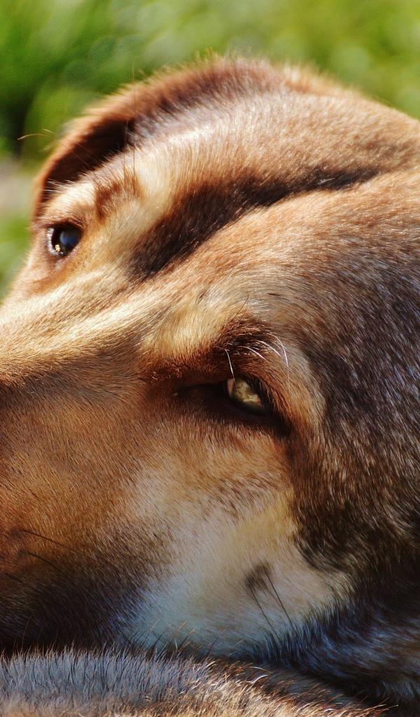 Wallpaper Sad dog resting on the green grass