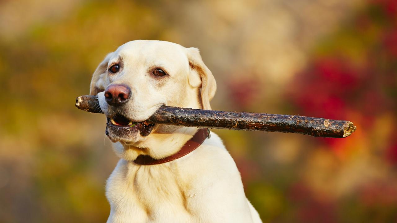 Wallpaper Golden Retriever with a stick in the teeth