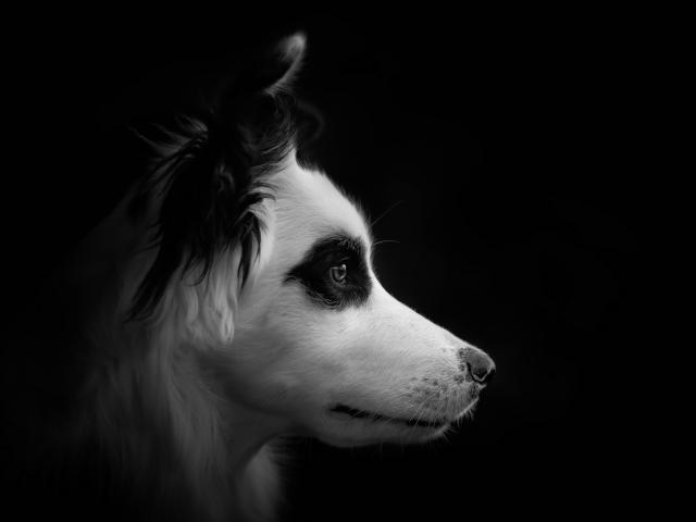 Wallpaper Muzzle of the dog breed Border Collie black and white photo