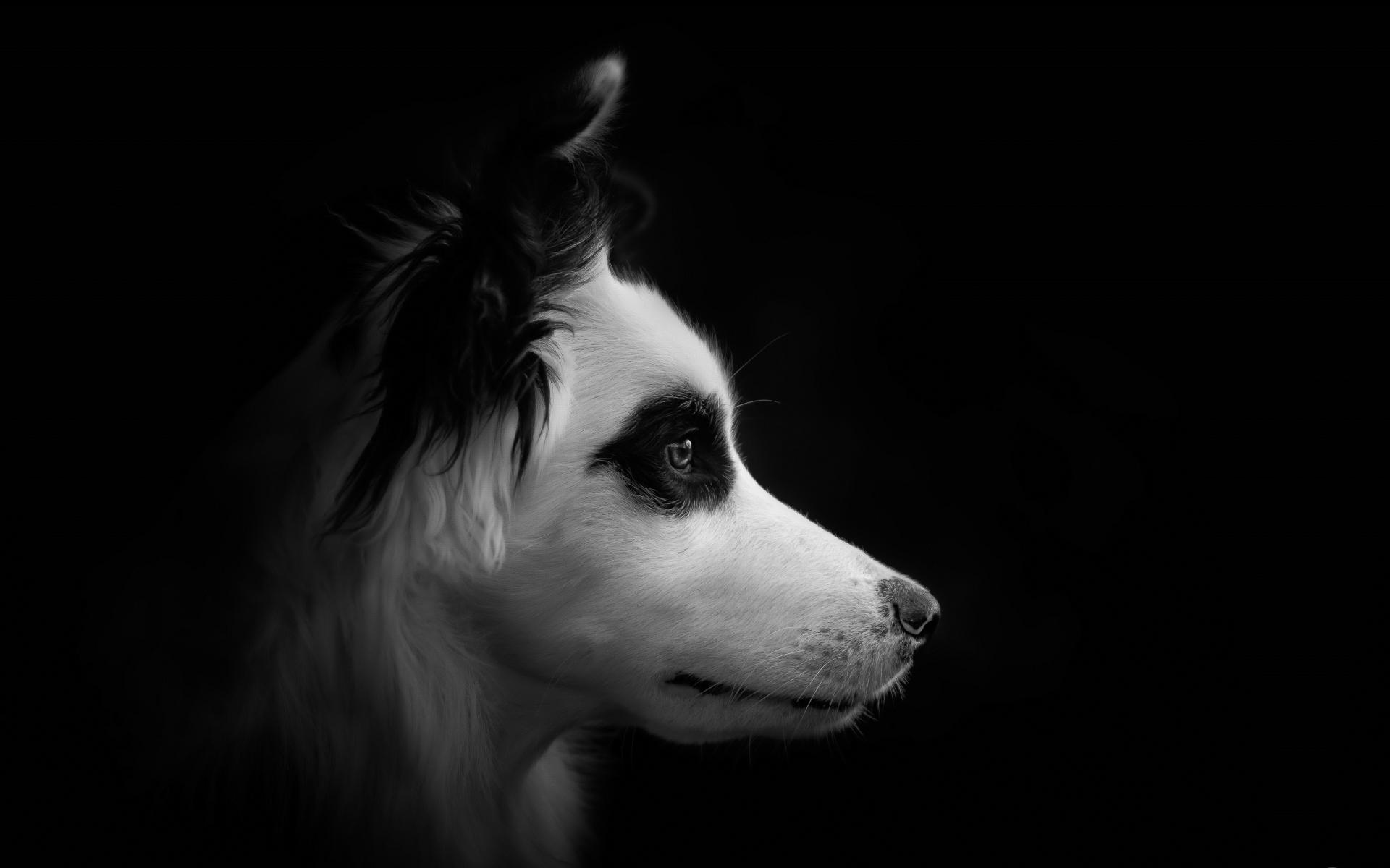 Wallpaper Muzzle of the dog breed Border Collie black and white photo