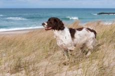 Wallpaper Sad puppy of a cocker spaniel lies on the grass