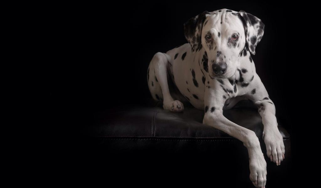 Wallpaper Dalmatians lay on a leather sofa on a black background