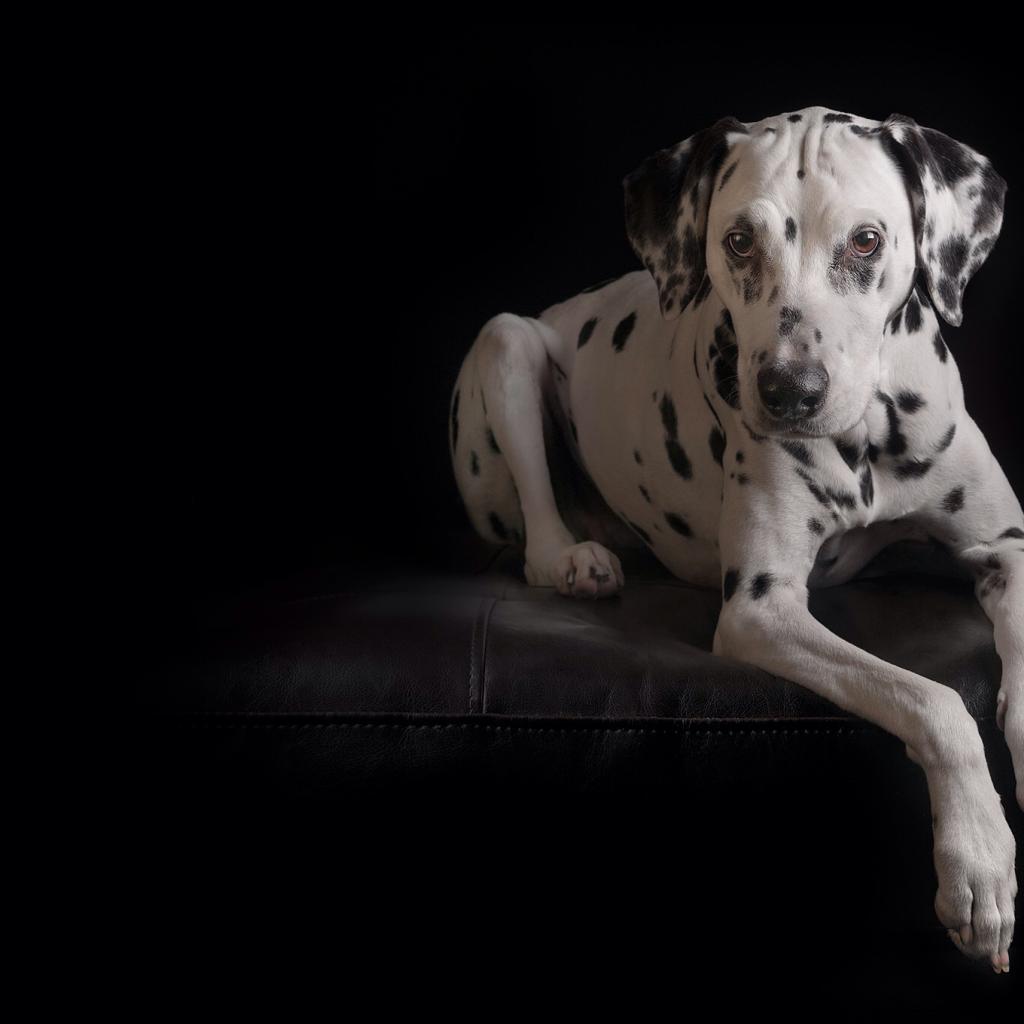 Wallpaper Dalmatians lay on a leather sofa on a black background