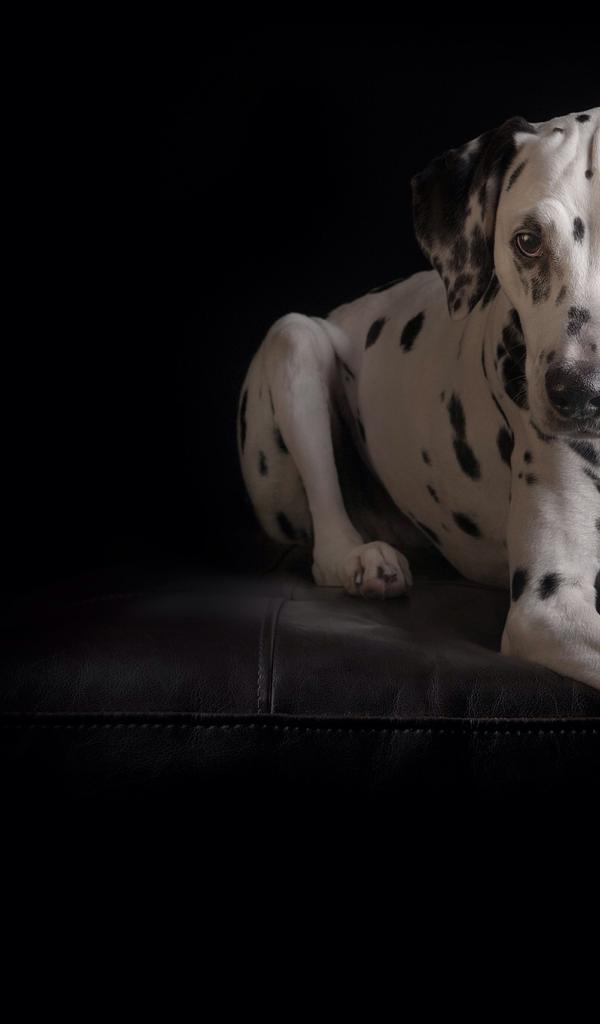 Wallpaper Dalmatians lay on a leather sofa on a black background