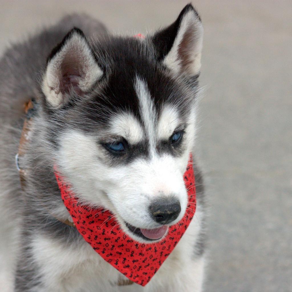 Wallpaper Blue-eyed hussy puppy with a red scarf around his neck