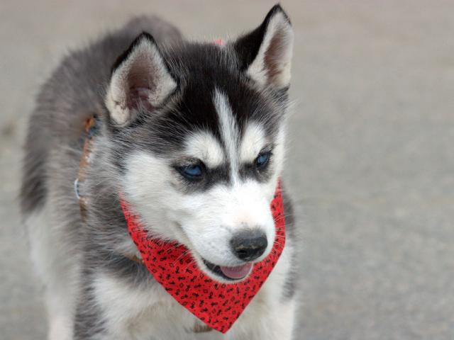 Wallpaper Blue-eyed hussy puppy with a red scarf around his neck