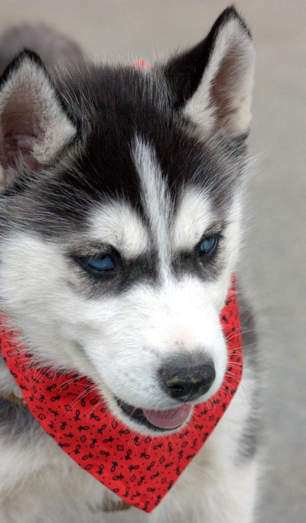 Wallpaper Blue-eyed hussy puppy with a red scarf around his neck