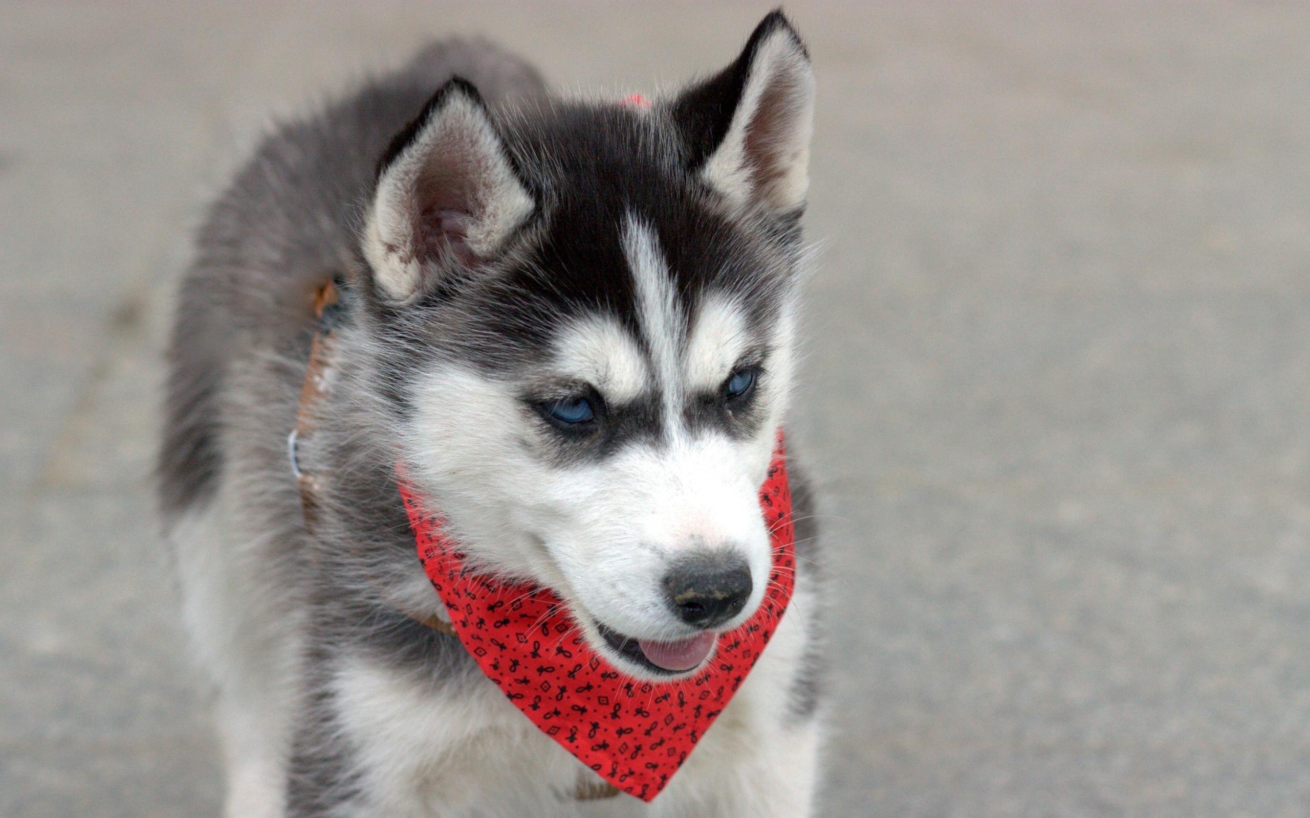 Wallpaper Blue-eyed hussy puppy with a red scarf around his neck