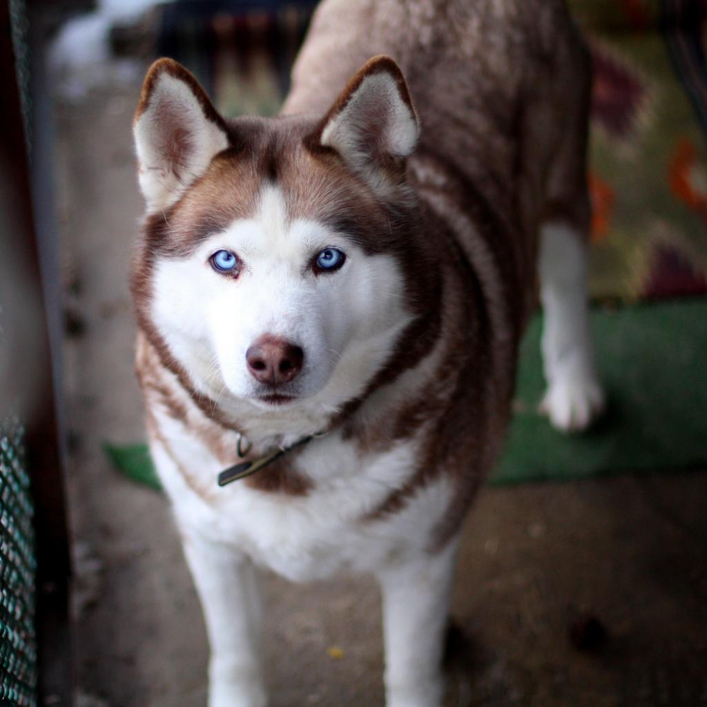 Wallpaper Sad blue-eyed husky with a leash
