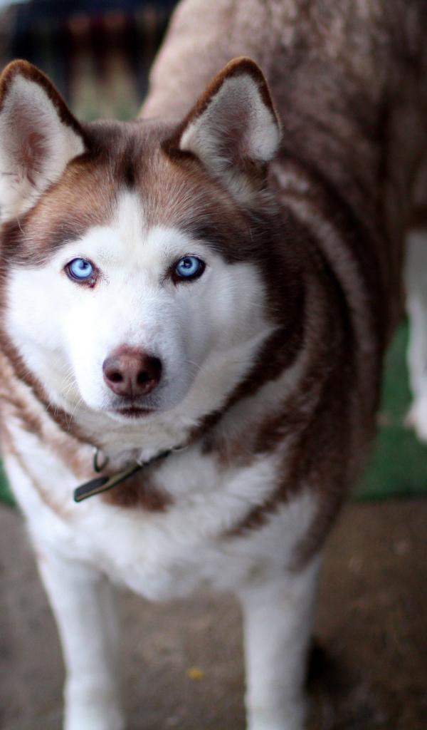 Wallpaper Beautiful blue-eyed husky cat with a collar